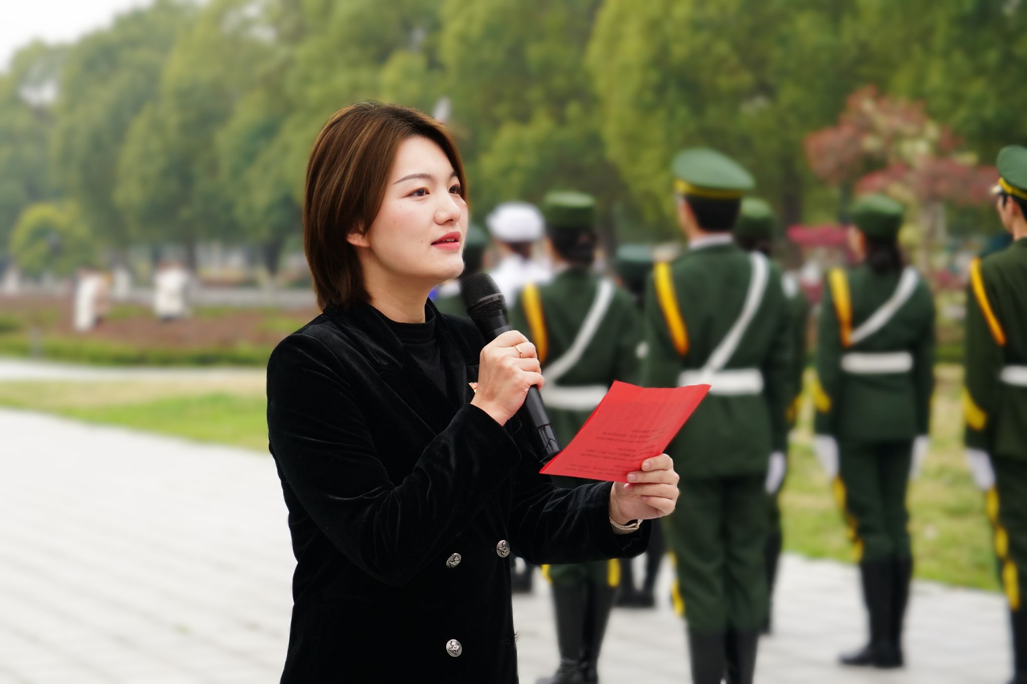 迎着朝阳,在国旗护卫队的护送下,全院师生的庄严注目下,伴随着雄壮激昂的《义勇军进行曲》,鲜艳的五星红旗缓缓上升,在微风中高高飘扬。