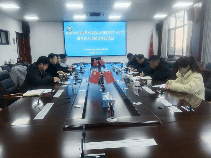 为深入了解高校科研项目、研发投入统计工作的开展情况,1月16日下午,阜阳市科技局党组成员、副局长王显林一行到我校开展研发投入统计调研工作。座谈会由校党委委员、副校长刘明主持,教务处、财务处、总务处相关同志参加座谈会。